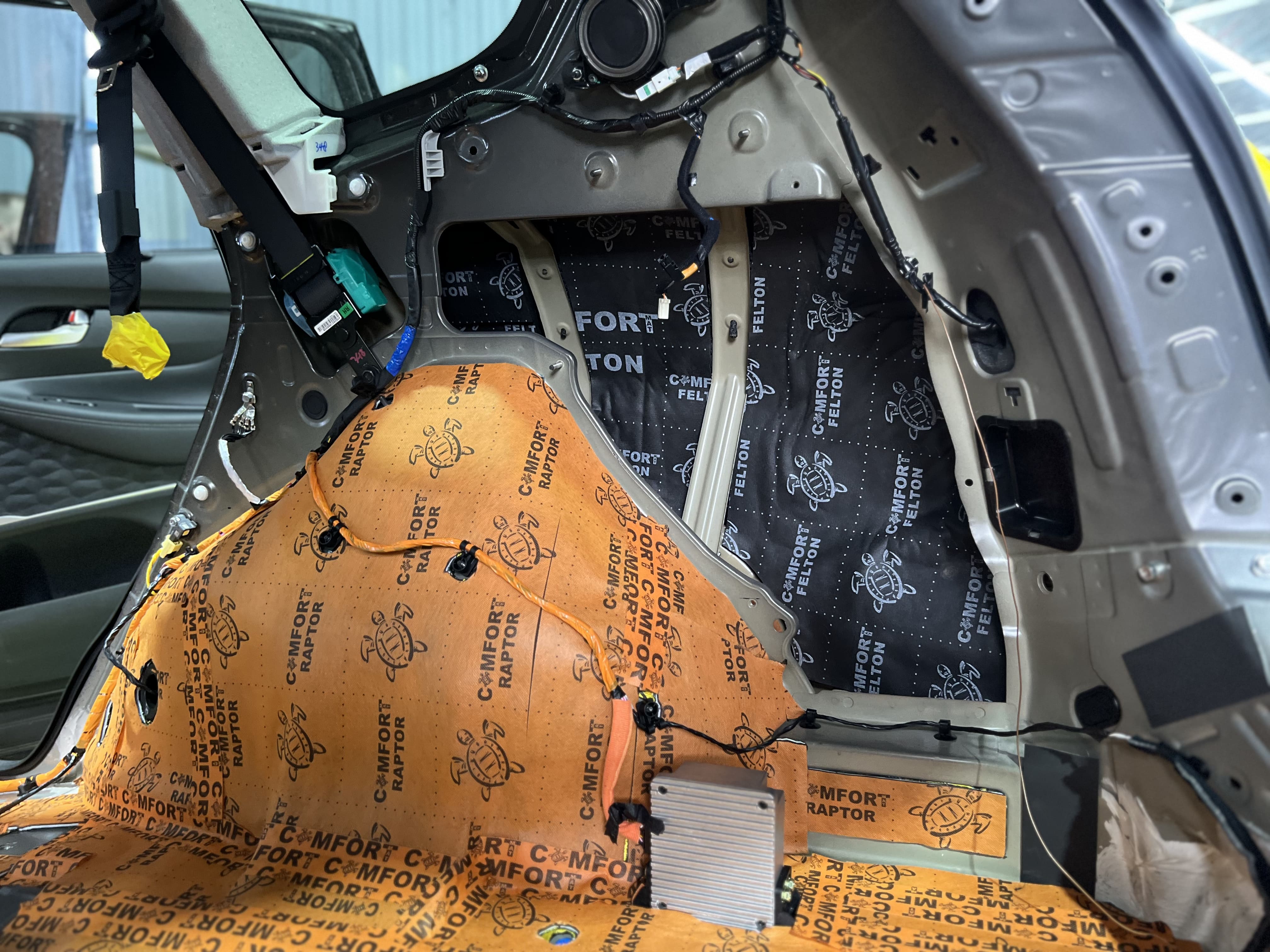 Материалы Comfort Mat обеспечили не только тишину, но и дополнительную теплоизоляцию и защиту кузова от коррозии. Фотографии этапов работы демонстрируют профессионализм и внимание к деталям. Если вы хотите, чтобы ваш Hyundai Santa Fe стал идеальным спутником для всей семьи, эта шумоизоляция – лучший выбор!