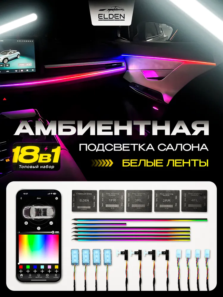Контурная подсветка для автомобиля 18 в 1 White